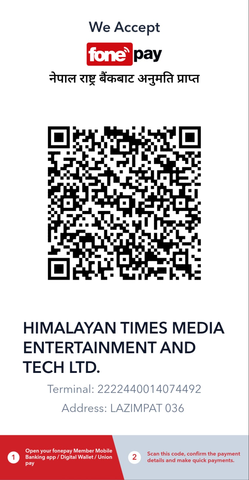 Payment Terms: Registration will be confirmed only if the payment is done, and the charges will be applied according to the date of registration. Himalayan Times Media Entertainment and Tech Limited reserves the right to refuse admission if payment is not received on time.